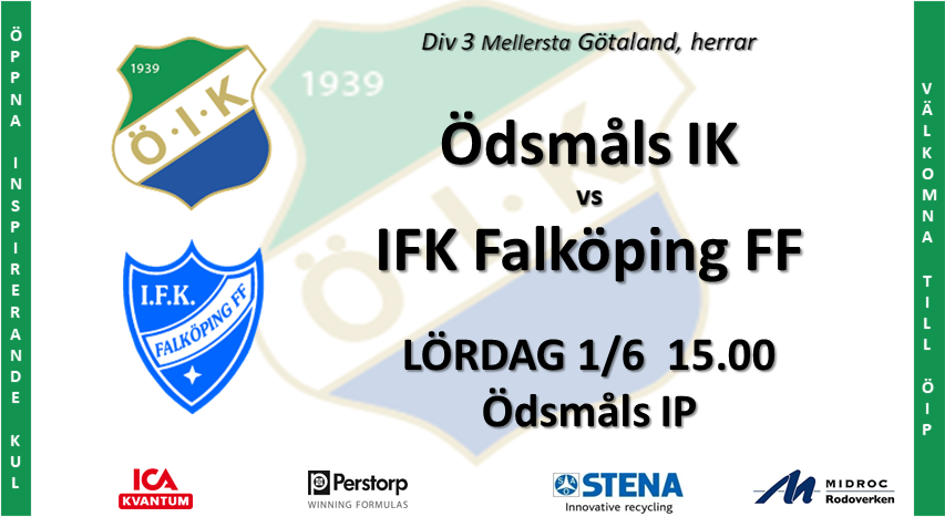 Det är åter dags för div.3 fotboll i Ödsmål. Välkomna upp till idrottsplatsten kl 15.00 för att trotsa vädret och heja på våra grabbar till första 3-poängaren för säsongen! I etermiddag gästas vi av IFK Falköping FF och vi önskar gästerna välkomna till vår grönvita borg! Tid: Lördag 1 juni15.00 Plats: Ödsmåls IP Entréavgift: 60 kr Medlem och pensionär: 30 kr 0-16 år eller aktiva spelare i ÖIK: fri entré Vi vill påminna besökare till matchen som kommer med bil att åka förbi anläggningen och parkera på anvisad plats på vår grusplan! Följ skyltarna! Ödsmåls IK 1 jun 2019 0kommentarer
