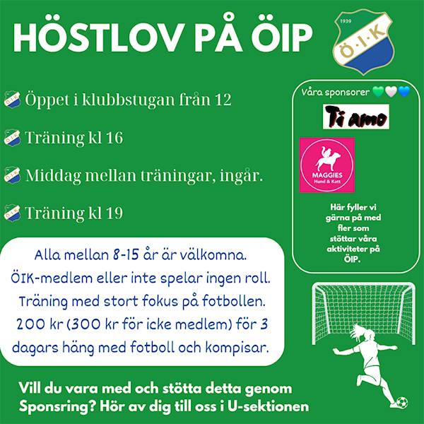Dags att anmäla sig till höstens höjdpunkt, vårt höstlovshäng på ÖIP med camp på eftermiddagen.